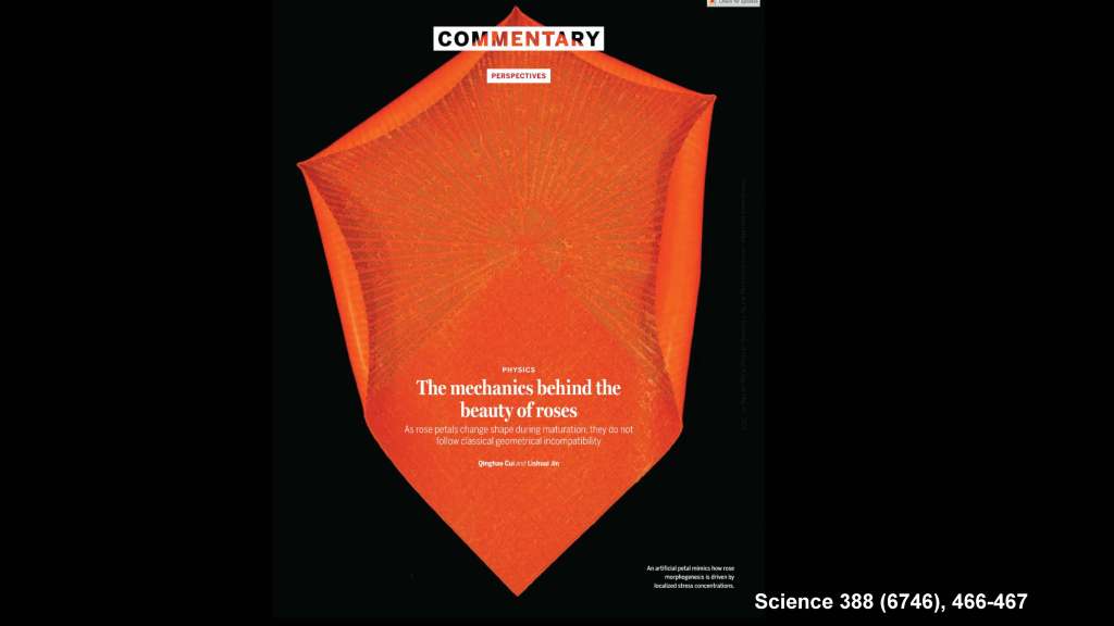 - May 1, 2025 – Our invited Perspective article has been published in Science, highlighting the work of Dr. Zhang et al. on uncovering the underlying mechanics of cusp formation in roses. Read more.
