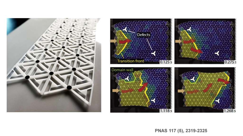- Oct. 24, 2025 – Our recent study has been accepted by Physical Review Letters, where we demonstrate that internal dynamics can modify, promote, and direct avalanche behavior in multistable systems. These phenomena provide a new strategy for controlling the deformation pathways in metamaterials and open a new path towards mechanical counting and computing. Read more.